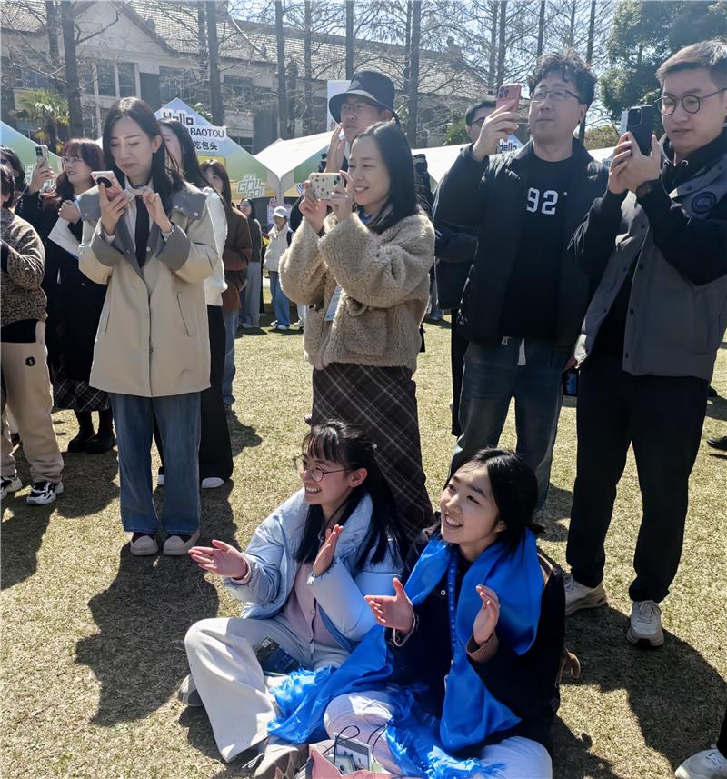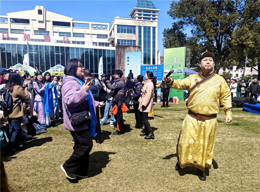 人群中,一位抱著書本的女生踮起腳尖,試圖看清那個拉著馬頭琴的身影?!度f馬奔騰》的旋律從琴弦上奔涌而出,琴弓起落間,仿佛有千軍萬馬從草原踏過。她掏出手機(jī),鏡頭拉近——演奏者身著蒙古袍,神情專注,琴聲穿過春日的梧桐葉,在校園里回蕩。這是包頭市藝術(shù)劇院走進(jìn)復(fù)旦大學(xué)的第三天。